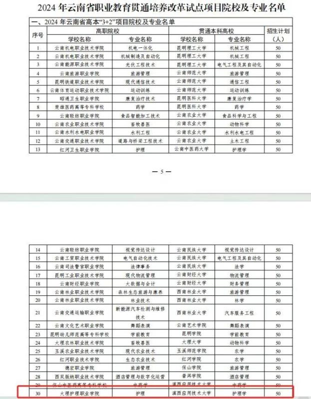 近日,云南省教育厅下发《关于启动实施2024年职业教育贯通培养改革试点工作的通知》,BB贝博艾弗森官方网站被确定为云南省高本“3+2”职业教育贯通培养改革试点项目院校,学校优质护理专业与滇西应用技术大学优质护理学专业合作开展高本“3+2”贯通培养,2024年计划招生50人。