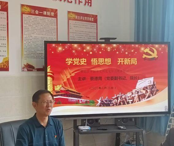为进一步推动党史学习教育的深入开展,按照学院党委党史学习教育实施方案要求,结合基础医学部党支部实际, 4月26日,学院党委副书记、院长、学院宣讲团成员蔡德周同志到基础医学部党支部开展党史学习教育专题宣讲,基础医学部全体党员、教师,审计科全体同志参加了本次学习。