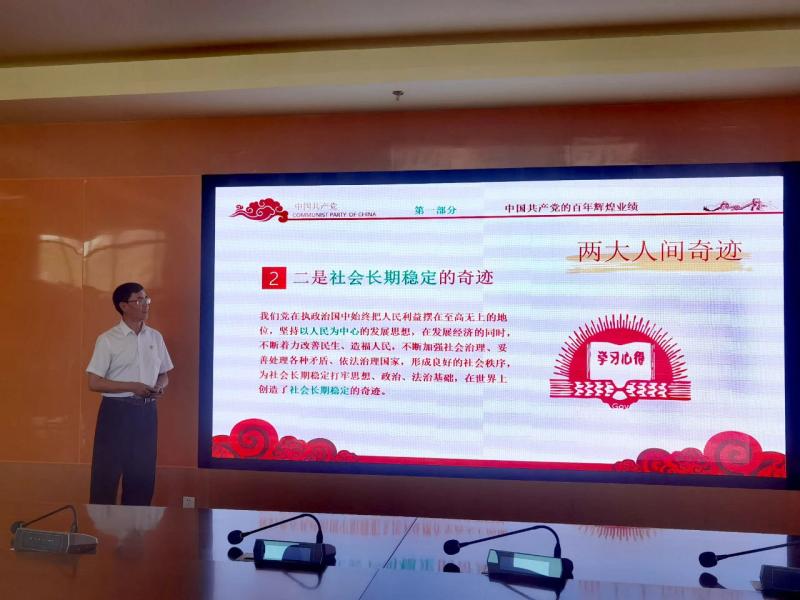 王书记紧紧围绕“中国共产党的百年辉煌业绩、深刻把握百年未有之大变局、党的百年辉煌业绩为应对百年大变局提供重要条件”三部分进行了详细讲解。