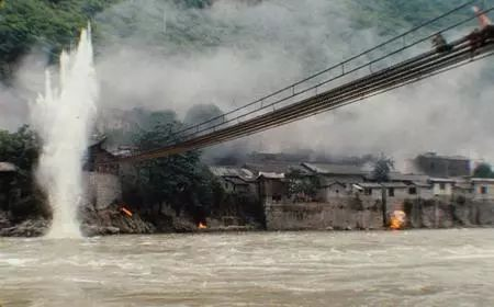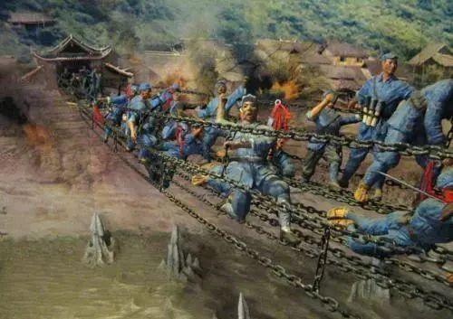 当突击队刚刚冲到对岸,敌人就放起火来,桥头立刻被大火包围了。在这千钧一发的时刻,传来了团长和政委的喊声:“同志们!为了党的事业,为了最后的胜利,冲呀!”英雄们听到党的号召,更加奋不顾身,都箭一般地穿过熊熊大火,冲进城去,和城里的敌人展开了激烈的搏斗。激战了两个小时,守城的敌人被消灭了大半,其余的都狼狈地逃跑了。红四团英勇地夺下了泸定桥,取得了长征中的又一次决定性的胜利。红军的主力渡过了天险大渡河,浩浩荡荡地奔赴抗日的最前线。
