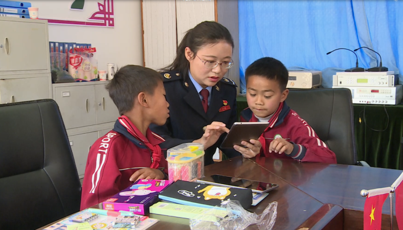 采访当天中午,在学校办公室里,学生们正在用李雪媛和同事资助购买的平板电脑和远在省外打工的父母进行视频通话。