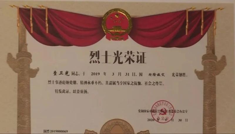 之后,中华人民共和国应急管理部评定查卫光为烈士、追记一等功,追认中共党员。