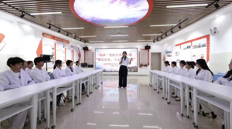 在学校“红色传承教育实践基地 ”,马克思主义学院思政课教师张建英、张健月、柴薇、张银、杨晶露开展多课程联动,同频共振,同讲一堂“铭记历史,弘扬抗战精神”的思政大课,激励青年学生将“小我”融入“大我”,将伟大抗战精神转化为具体行动,怀爱国之心、立报国之志、践强国之行,让伟大的抗战精神焕发青春光彩。