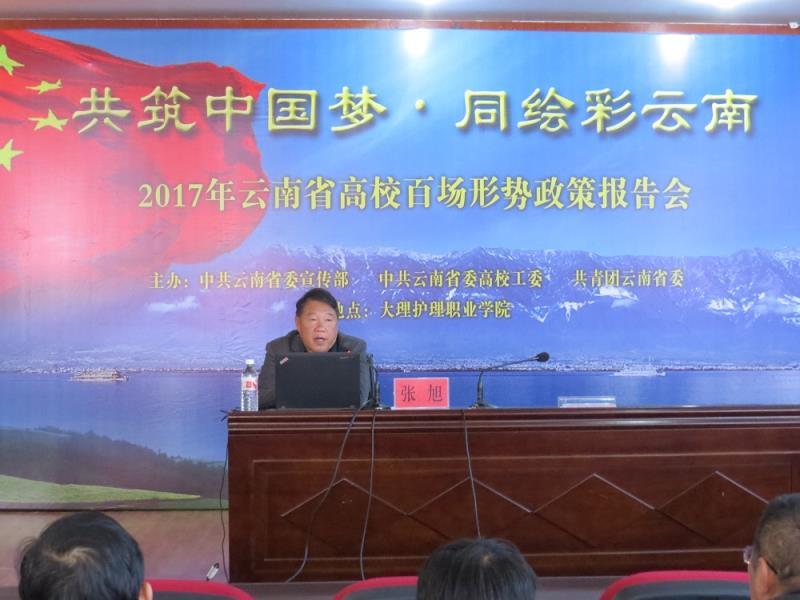 张旭教授在宣讲报告中指出,省第十次党代会,是在全省认真学习贯彻党的十八届六中全会精神重要时刻、决战脱贫攻坚、决胜全面小康关键阶段召开的一次重要会议。这次会议对于进一步团结和动员全省广大党员、干部和各族人民,紧密团结在以习近平同志为核心的党中央周围,深入学习贯彻习近平总书记系列重要讲话和考察云南重要指示精神,统筹推进“五位一体”总体布局和协调推进“四个全面”的战略布局,坚持新发展理念,坚持稳中求进的总基调,主动服务和融入国家发展战略,实现云南跨越式发展具有十分重大而深远的意义。