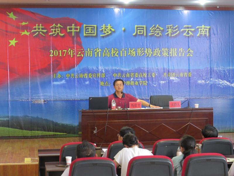 为深入学习贯彻习近平总书记系列重要讲话和考察云南重要讲话精神,更加紧密地团结在以习近平同志为核心的党中央周围,切实增强“四个意识”,不忘初心,奋勇前进,以优异的成绩迎接党的十九大胜利召开,6月14日,BB贝博艾弗森官方网站邀请中共云南省委宣讲团成员,云南省委党校、党委书记、常务副校长杨铭书为广大师生作宣讲报告,全院教职工、部分学生代表共300余人聆听了报告。