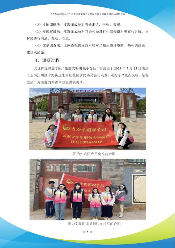 贝博官网生态文明引领实践团队由李文辉、李晓娟、杨春、李心玥、王葶、李学朋6位同学共同组建,于2023年7月15日至25日期间在云南省玉溪市江川区开展了为期10天的“青春百团助百村”服务乡村振兴社会实践活动,切实贯彻落实团中央、团省委关于深化实施“乡村振兴青春行动”的总体部署,深入开展“寻访乡村 关注生态 助力振兴”深度走访实践活动。