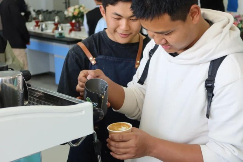 在大理农林职业技术学院专业教师的指导下,共建高校师生分别进行咖啡冲调、糕点烘焙以及插花技艺等课程实践学习,开展劳动教育,弘扬工匠精神。同时,大理农林职业技术学院专业课教师还为共建高校师生生动讲述了指导学生创新创业的成功案例。
