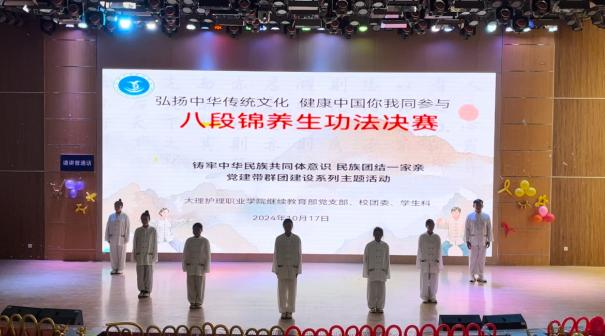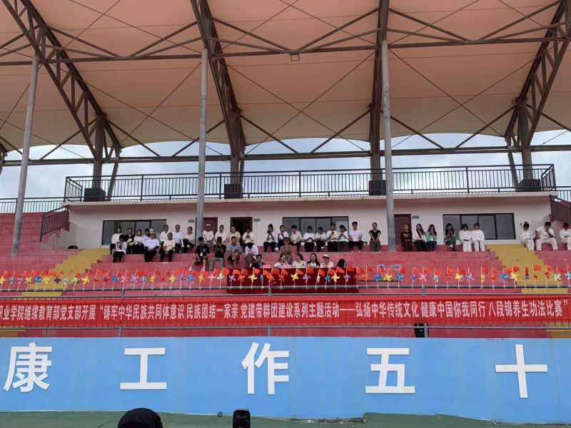 近期,BB贝博艾弗森官方网站继续教育部党支部联合学校多部门,成功开展了“铸牢中华民族共同体意识 民族团结一家亲 党建带群团建设系列主题活动——弘扬中华传统文化 健康中国你我同参与 八段锦养生功法比赛”主题活动。此次活动以八段锦养生功法比赛为依托,旨在全面贯彻落实党的二十大,党的二十届二中全会和党的二十届三中全会精神,充分发挥党建带群团建设的作用,深入开展铸牢中华民族共同体意识教育实践活动,促进民族团结进步,推进和谐美丽清廉校园建设,弘扬中华传统文化,致力于提升学生的文化意识,促进学生的文化自信,培养学生的团队协作精神,激发学生对健身的浓厚兴趣和热情。
