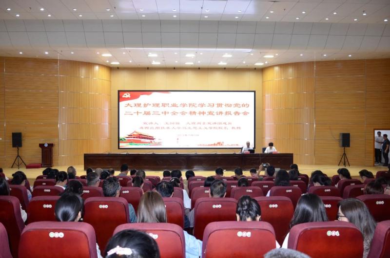专家学者深入讲。9月4日,BB贝博艾弗森官方网站召开学习宣传贯彻党的二十届三中全会精神宣讲报告会。大理州委宣讲团成员、滇西应用技术大学马克思主义学院院长王国强教授以《进一步全面深化改革、推进中国式现代化的重大意义和总体要求》为题对全校师生作专题宣讲。10 月31日,党的二十大代表李桂科医生以《推动全面深化改革 不断取得新成效》为题,向全校新生和老师宣讲党的二十届三中全会精神,激励医学生坚守医者初心、践行医学誓言。