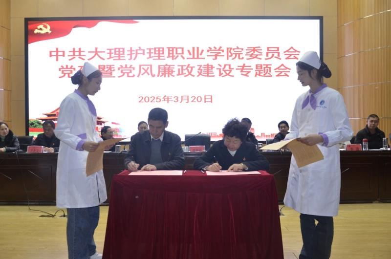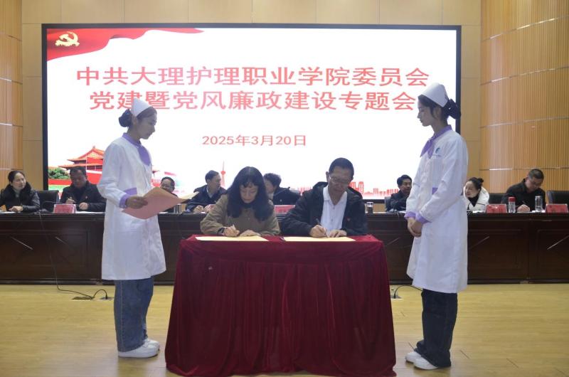 校党委书记廖惠群与护理系党支部书记袁秀林签订党建工作责任书