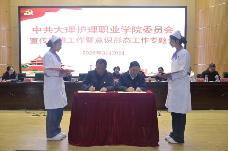 校党委专职副书记字利鹏与校党委委员、宣传部部长李大文签订意识形态工作责任书