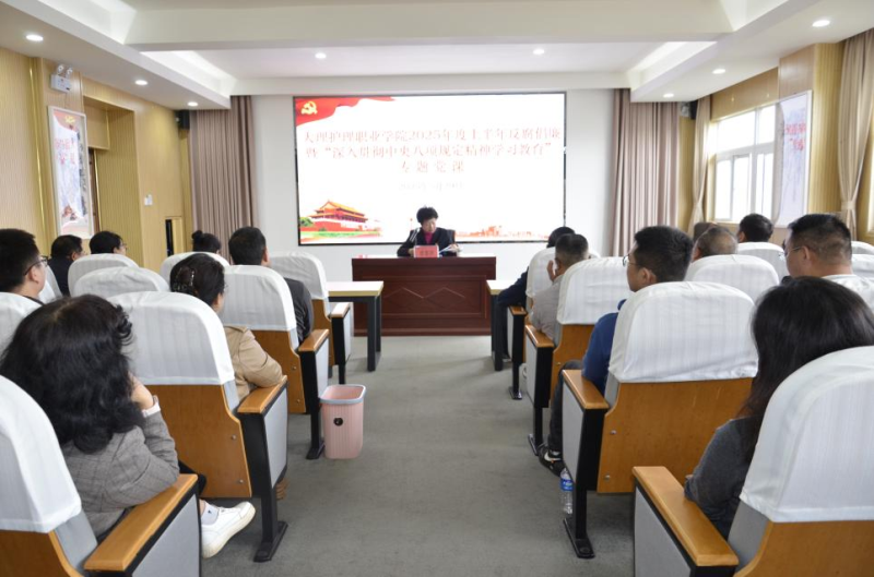 活动最后,学校党委书记廖惠群同志为全体人员讲授了《深入贯彻中央八项规定精神学习教育专题党课》并开展集体廉政谈话。廖惠群书记详细解读了中央八项规定精神的时代背景、核心要义及实践要求,例举反面典型案例警示党员干部。她指出,党员干部要深化认识,提高政治站位,严格自律树立良好形象,特别是教育工作者应牢记“学高为师,身正为范”,严禁违反中央八项规定的行为。她要求,一是筑牢思想防线,坚持人民立场;二是防微杜渐,严抓作风问题;三是严守纪律规矩,主动接受监督;四是锲而不舍,以钉钉子精神抓贯彻落实。