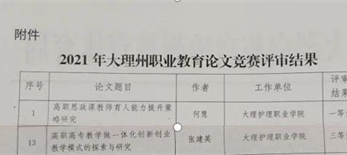 何慧老师的论文《高职思政课教师育人能力提升策略研究》获得一等奖,张建英老师的论文《高职高专教学做一体化创新创业教学模式的探...