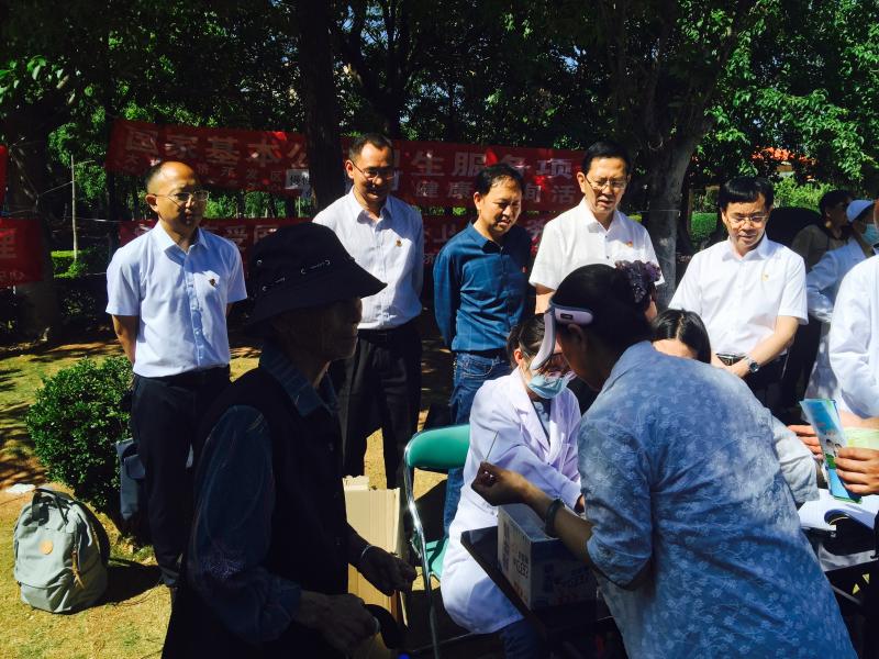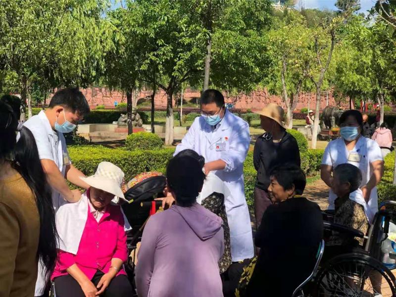 2021年5月17日上午,门诊部和党支部部分党员到明珠广场开展为辖区居民进行免费义诊活动,王荣富书记、蔡德周院长等学院领导到场进行指导。