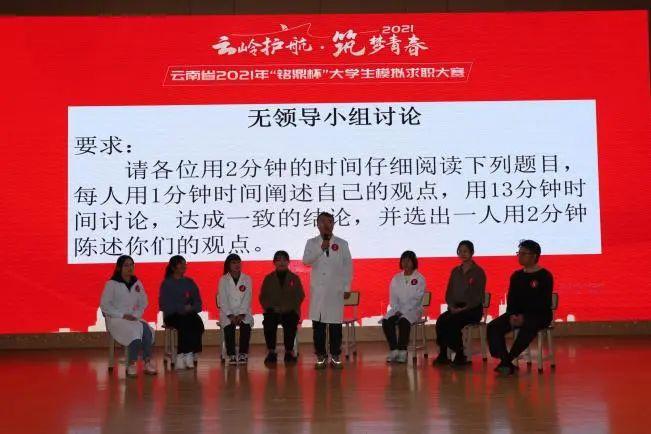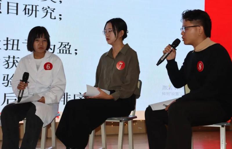 本次活动由复赛和决赛两个环节构成。复赛环节为无领导小组面试,经过审题、个人观点表达、小组讨论等环节,参赛的8名选手最终达成一致意见,选出代表作总结陈述。复赛结束,评委老师就复赛情况做出点评指导,同时也向观赛同学指出应试技巧。
