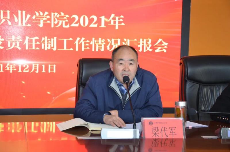 2021年12月1日,州委第十五考核组对学院2021年度落实党风廉政建设责任制工作进行检查考核。学院党委召开汇报会,会议由学院党委副书记、院长蔡德周主持。州委第十五考核组组长、州委州直机关纪检监察工委副书记梁代军同志作动员讲话,学院党委书记王荣富同志代表学院党政班子作学院关于2021年度落实党风廉政建设责任制工作情况汇报,王荣富书记和蔡德周院长进行现场个人述责述廉。