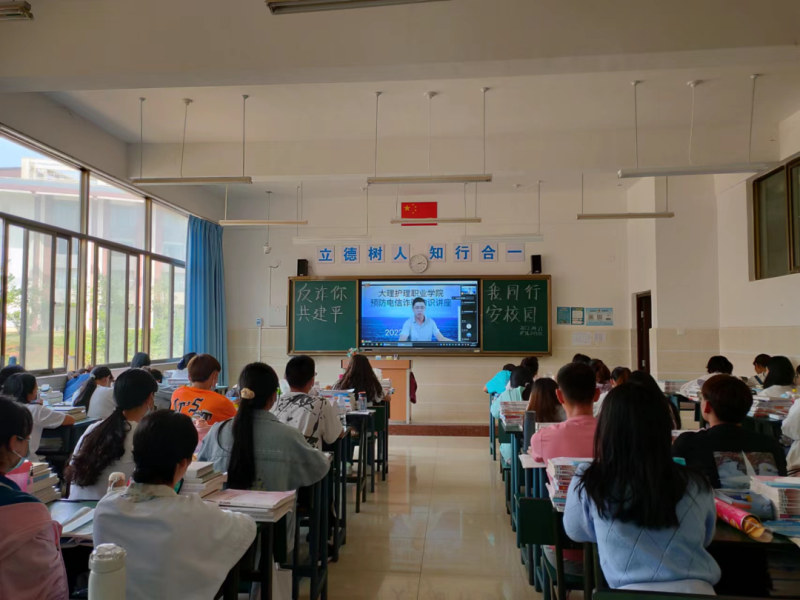 为贯彻落实云南省教育厅关于开展“反诈你我同行、共建平安校园”宣传活动的通知精神,全面开展反诈宣传进校园活动,巩固校园反诈宣传主阵地,扎实有效推进“无诈校园”建设,4月27日下午,学校邀请大理市公安局海东新区派出所所长刘硕警官,到校为全校师生开展线上“反诈你我同行、共建平安校园”防范电信诈骗知识讲座。在校近4000名师生通过教室多媒体设备聆听了此次讲座。讲座由学生科负责人杨品老师主持。