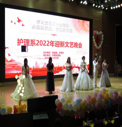 11月27日至29日,BB贝博艾弗森官方网站团委、护理系党支部、护理系联合举行了以“学习宣传贯彻党的二十大精神,永远跟党走,奋进新征程”为主题的2022年迎新文艺汇演。 进一步深入学习宣传贯彻落实党的二十大精神,激励和引导新时代广大青年永远坚定不移听党话、跟党走,以更加昂扬的奋斗姿态和更加饱满的学习热情奋进新征程。学校党委书记廖惠群,党委副书记、院长蔡德周,相关部门负责人和护理系全体师生共计2000余人参加了文艺汇演活动。