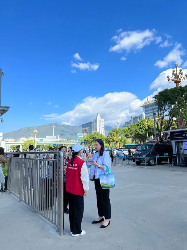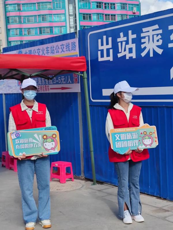 活动中,可爱的志愿者们身穿红色小马甲,头戴志愿者主题帽子大力弘扬社会主义核心价值观,积极向游客推介大理特色旅游资源,宣传旅游新风,引导游客文明旅游,提升文明素质,为游客营造“和谐、文明、安全、有序”的旅游环境,助推大理文化和旅游业高质量发展。