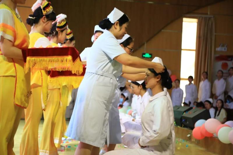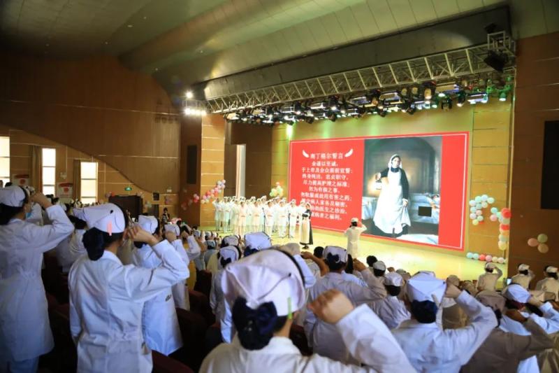 活动中,护理系师生庄严宣誓,重温南丁格尔誓言,立志为人类的健康事业奋斗终生。护理系教师为即将成为健康守护者的白衣天使的学生们授护士帽,传递救死扶伤的大爱精神和责任。
