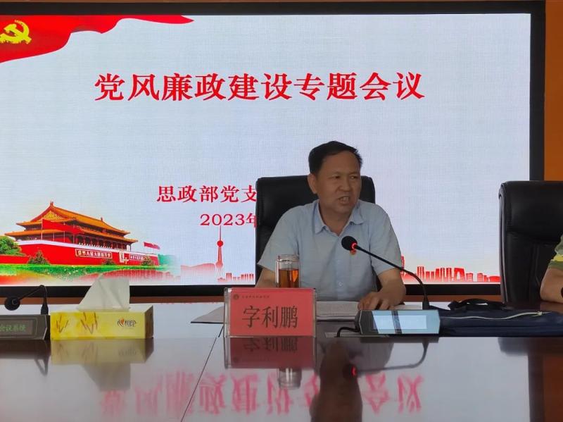 5月29日,思政部党支部和思政部召开党风廉政建设暨师德师风专题会议,学院党委专职副书记字利鹏,学院党委委员、副院长郭向周出席会议,会议由支部书记李俊伟主持。