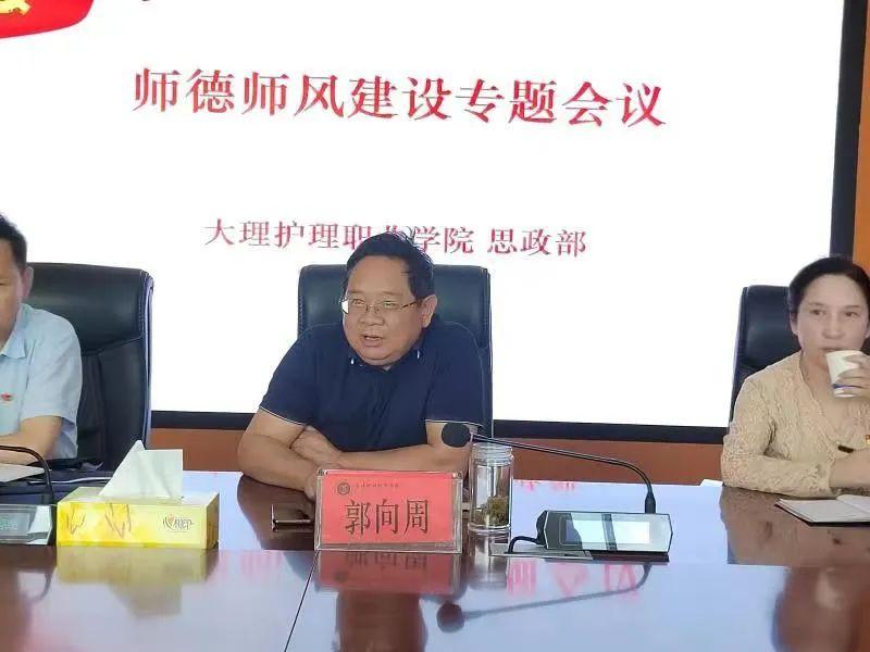 郭向周副院长传达教育部、省、州和学校关于师德师风建设工作的相关要求,进一步强调师德师风建设的重要性,对思政部全体教师提出师德师风建设工作三点要求:一要争做“四有”好老师,不断提高自身的教学能力,加强教学科研,以科研促教学,不断提升自己的教学素养,以”愚公移山”的精神面对困难,以“年轻心态”面对学生,不断更新教学理念,完善教学思想;二要做到坚守底线,一定要知敬畏、存戒惧、守底线,敬畏党、敬畏人民、敬畏法纪。只有严以修身,才能严以律己;三要做到无私奉献,身为思政教师,应当全身心的投入到思政教学工作中,增强新时代思政教师的使命与担当,进一步规范自己的职业行为,明确师德底线,弘扬高尚师德,贯彻落实立德树人的根本任务。