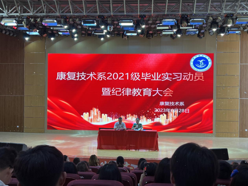 6月28日,BB贝博艾弗森官方网站康复技术系召开2021级毕业实习动员大会暨第六届学生康复技能大赛颁奖仪式,进一步扎实做好2021级学生毕业实习工作,让学生明确实习的目的和重要意义,强化实习安全管理,正风肃纪,表彰先进。学校党委书记廖惠群出席会议,康复技术系教师和2021级全体学生参加了会议。会议由李波副主任主持。
