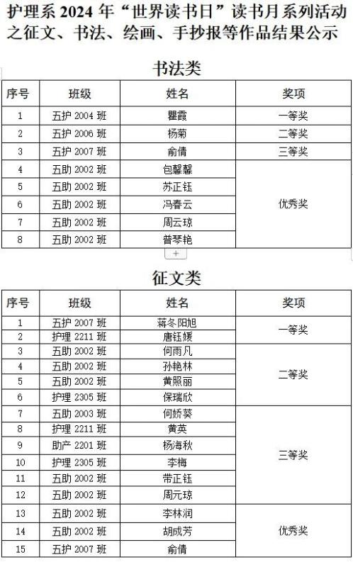 4月6日-4月29日,学校护理系组织开展征文、书法、绘画、手抄报作品征集活动,推进学校2024年“世界读书日”读书月系列活动。活动收集书法作品8份、绘画作品10份、手抄报作品16份、征文15份,共计征集作品49份。