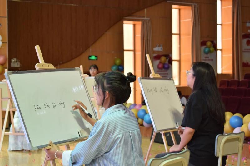 初赛选用普通话水平测试中的题目,以线下集中纸考的形式进行;决赛设置笔答题和抢答题两个环节,题目涉及汉字笔顺书写、汉字拼音标记、普通话朗读、案例分析,分别从汉字听写、规范笔顺、规范读音和错别字改正四个方面考察选手的语言文字能力。比赛过程中,选手们坐姿端正,反应迅捷,笔画规范,发音标准。