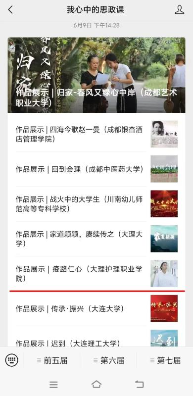 6月9日,在全国高校大学生微电影展示活动“我心中的思政课”官方网站,展出BB贝博艾弗森官方网站荣获教育部组织的习近平新时代中国特色社会主义思想大学习领航计划主题教育活动——第七届全国高校大学生微电影展示活动竞赛三等奖作品《疫路仁心》。