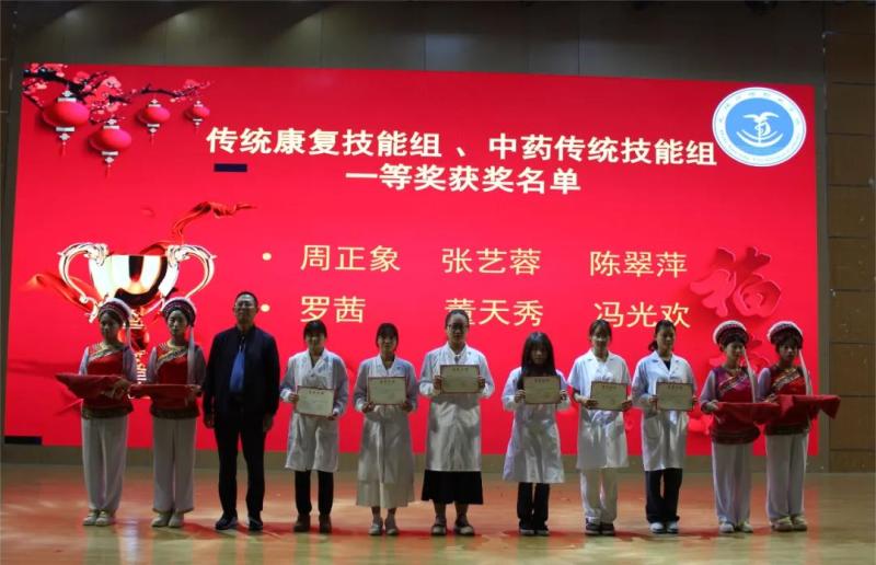 学校党委书记廖惠群,党委副书记、院长蔡德周等领导亲临现场为第七届学生康复技能大赛获奖的同学颁奖,并激励获奖的选手再接再厉,百尺竿头,更进一步,希望全校学生以受表彰的同学为榜样,顽强拼搏、刻苦努力、奋起直追。