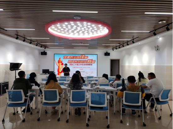 会上,专职思政课教师李俊伟副教授作“党的二十届三中全会精神解读”专题讲座,他围绕“进一步全面深化改革的重大意义和总体要求”,“深刻认识进一步全面深化改革的指导思想、总目标和重大原则”以及“全面准确理解《决定》提出的进一步全面深化改革重大举措”等三个方面进行了阐释。他通过对改革开放以前、改革开放以来党的历届三中全会脉络、特点进行归纳和分析,深刻阐释了《中共中央关于进一步全面深化改革、推进中国式现代会的决定》是在新的历史起点上推进全面深化改革向广度和深度进军的又一次总动员、总部署,既是党的十八届三中全会以来全面深化改革的实践续篇,也是新征程推进中国式现代化的时代新篇,彰显了以习近平同志为核心的党中央将改革进行到底的坚强决心和强烈使命担当。