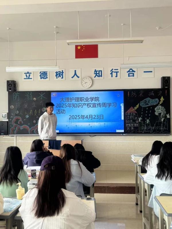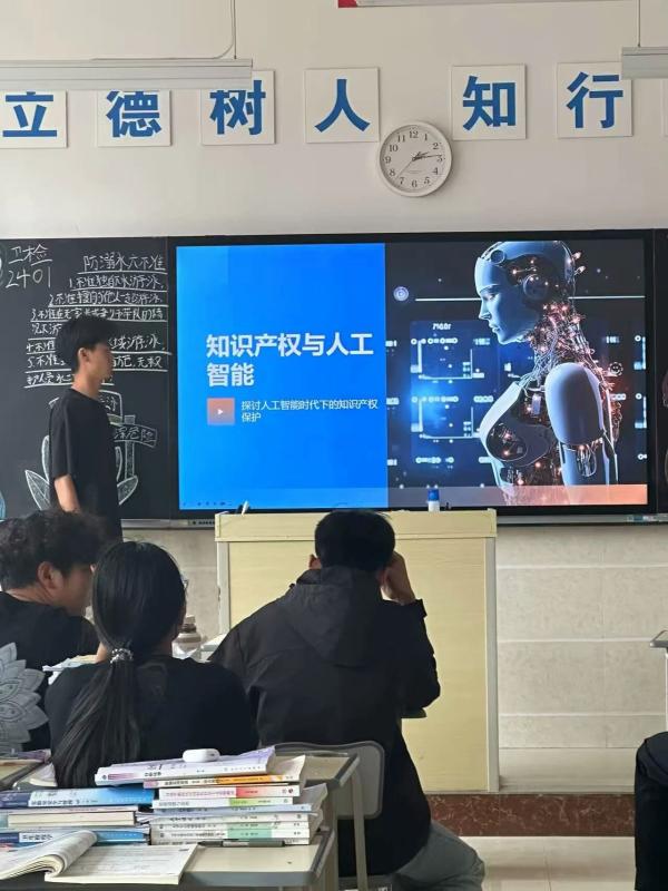 各班级学生通过开展“知识产权与人工智能”主题班会,阐述人工智能时代下知识产权保护面临的新挑战与新机遇。活动通过互动问答、小组讨论等形式,引导学生积极思考,就人工智能生成内容的版权归属、医疗数据的知识产权保护等热点问题展开热烈探讨,现场学习氛围浓厚。