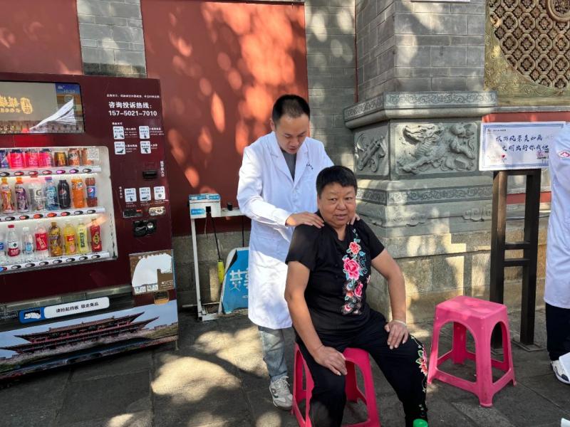 5月22日,学校门诊部受大理市卫健局邀请,到大理古城开展“家庭医生签约”义诊宣传活动。活动现场,门诊部社区公卫科工作人员通过悬挂宣传主题标语、向广大居民群众宣传“家庭医生签约”服务意义和内容、合理膳食、中医药保健知识、家庭医生团队、签约服务的内容、服务方式和优惠措施等活动;传播以签约服务促进健康管理的理念,增加家庭医生团队社会美誉度,提高居民签约的积极性。活动中,门诊部工作人员还为居民测量血压,测血糖,并对居民提供中医推拿等康复义诊服务。