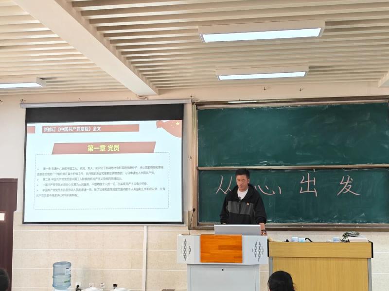 党支部纪检委员张敏华同志为参与的党员和学生,从《中国共产党章程》修订背景、修订内容和全文内容三个方面进行党课培训。