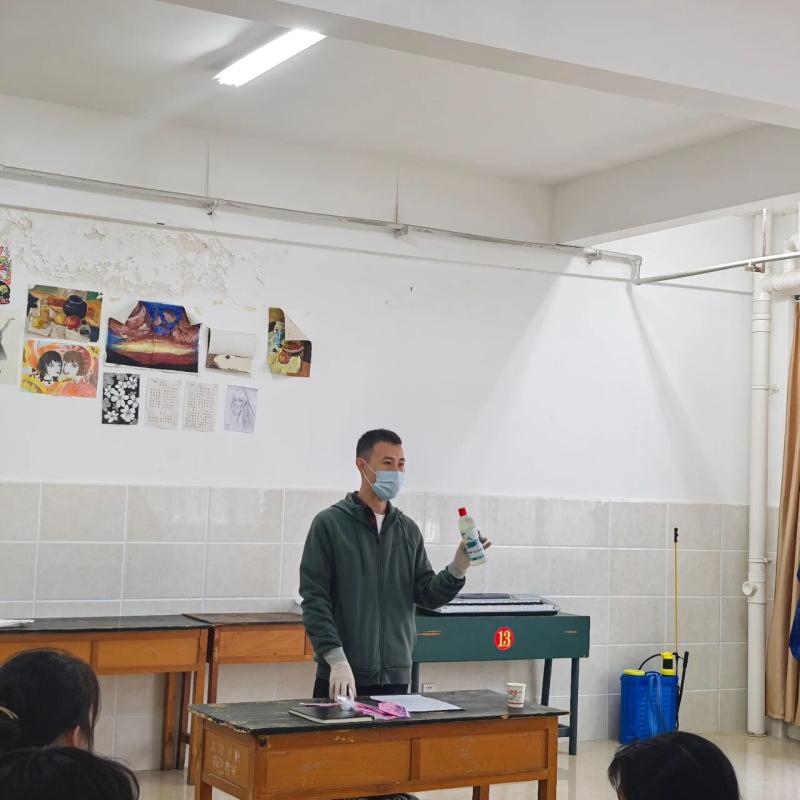 培训会上,学校门诊部李焱钧医生深入浅出地讲解了秋冬季常见流行性感冒、诺如病毒感染性腹泻、水痘、腮腺炎等疾病的主要症状、传播途径及预防措施,并重点结合学校保洁、宿管的工作场景,详细示范了如何科学规范地进行环境消毒、如何做好寝室及公共区域的通风换气、如何处理疑似污染物品等关键环节。要求校园保洁要确保环境消毒无死角、垃圾清理及时彻底。宿舍管理要督促学生宿舍勤通风、保持内务整洁,并密切关注住宿学生的健康状况,及时做好信息反馈。同时,李医生还特别强调了个人防护的重要性,现场演示了正确佩戴口罩、消毒水的配比、存储及消杀等方面的操作方法,现场解答实际工作中存在的问题,传授相关实用技能。