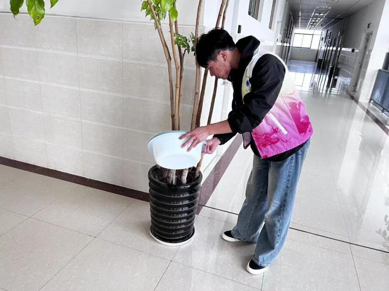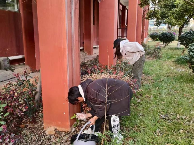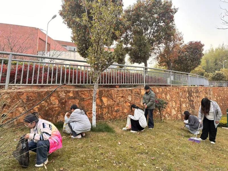 卫生死角清理组的师生们手持扫帚、垃圾袋、铲刀等工具,对教学楼后巷、宿舍区绿化带、食堂外围等重点区域的积存垃圾、烟头纸屑进行全面清理,集中整治墙面小广告、楼道乱堆杂物等问题,让卫生死角“焕新颜”;公共区域维护组分工明确、配合默契,仔细擦拭教学楼门窗、楼梯扶手等公共设施,规范整理图书馆书架,清扫校园道路沿线落叶与杂物,让校园公共空间更整洁;文明倡导组的志愿者们主动向校内师生发放“爱护环境”倡议书,耐心宣讲文明卫生理念,呼吁大家共同守护校园环境,营造出“人人参与环境整治、人人争当文明使者”的浓厚氛围。