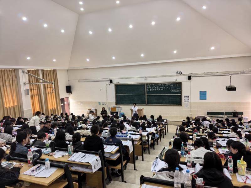 袁秀林书记深入阐释了护士执业资格证书的重要意义,系统讲解了高效复习方法与应试技巧,并对全体学生提出明确备考要求,鼓励大家以饱满状态、扎实功底迎接考试,确保取得理想成绩。