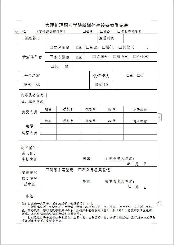 第六条 申办单位须在平台开通前5个工作日内提交申请,填报《BB贝博艾弗森官方网站新媒体建设备案登记表》。