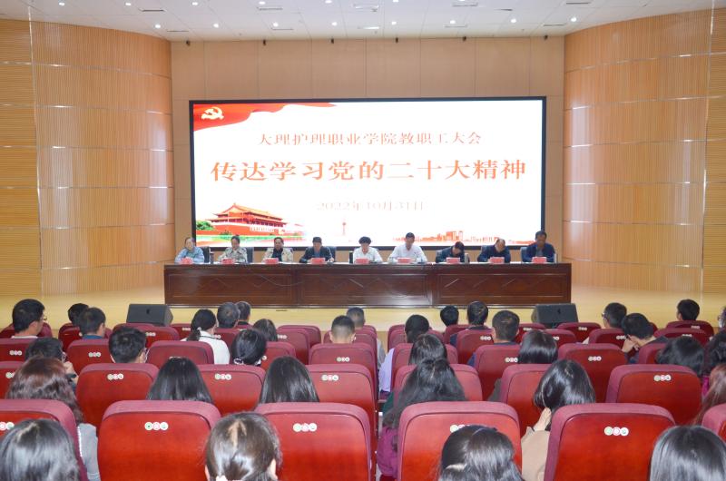 学校党委书记廖惠群传达学习党的二十大精神和省州领导干部大会精神。党委专职副书记字利鹏传达学习上级会议精神。纪委书记罗红伟,副院长石龙富、郭向周、李洁,保留正、副处级待遇领导出席会议,全体教师和部分学生代表参加会议。校党委副书记、院长蔡德周主持会议并作要求。