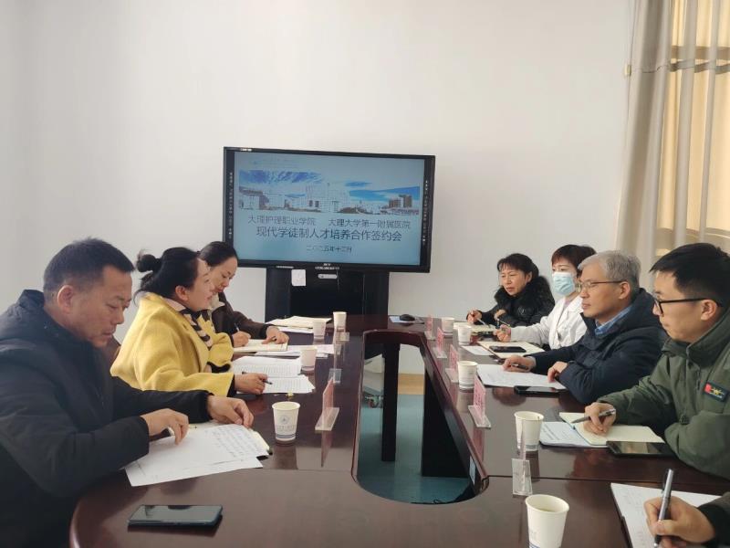 12月17日上午,BB贝博艾弗森官方网站与大理大学第一附属医院在大理大学第一附属医院医技楼六楼会议室隆重举行现代学徒制人才培养合作签约仪式。会议由大理大学第一附属医院副院长李绍波主持,双方院领导及相关部门负责人齐聚一堂,共同见证这一深化产教融合、医教协同创新人才培养的关键举措。本次合作旨在通过院校“双主体、双导师”协同育人模式,为滇西地区培养高素质卫生健康人才,标志着院校合作迈入制度化、规范化新阶段。