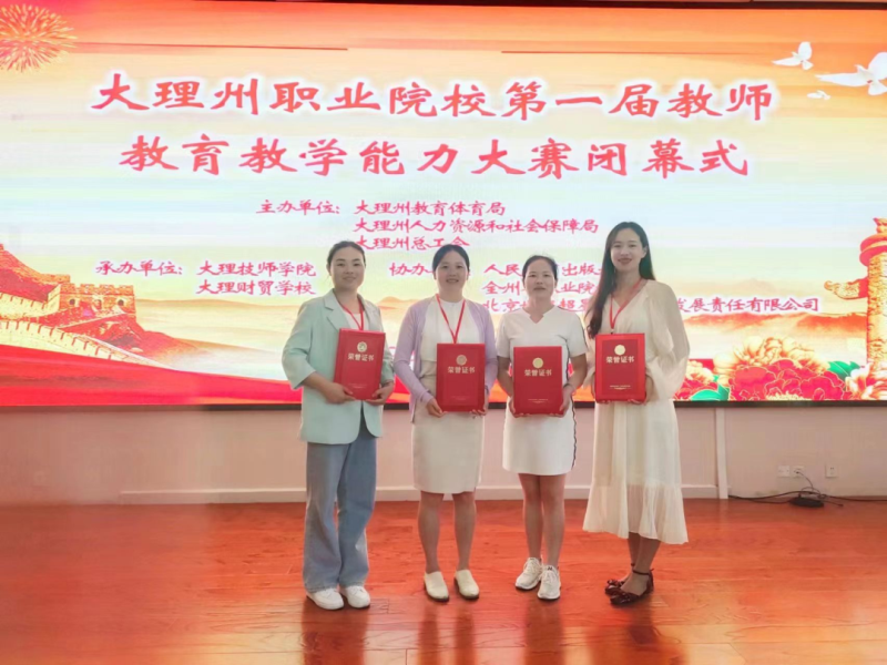 BB贝博艾弗森官方网站教师在大理州教育体育局、大理州人力资源和社会保障局、大理州总工会组织开展的2022年大理州职业院校第一届教师教育教学能力大赛公共基础课组、专业课组、班主任能力组三个级组中荣获2个一等奖、1个二等奖和5个优秀奖的佳绩。