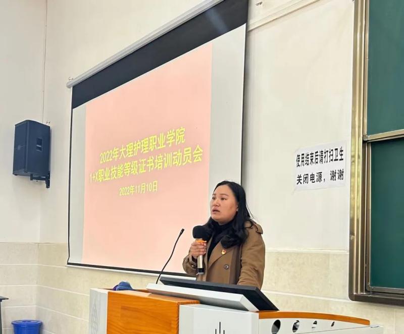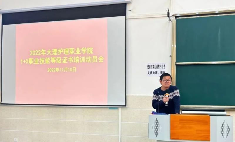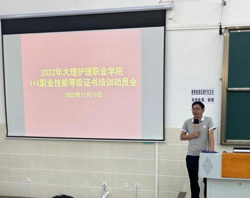 11月10日下午,贝博官网组织召开“1+X”职业技能等级证书培训动员大会。教务科、护理系、证书项目组教师和参培学生参加本次动员大会。会议由护理系郭太兵主任主持。