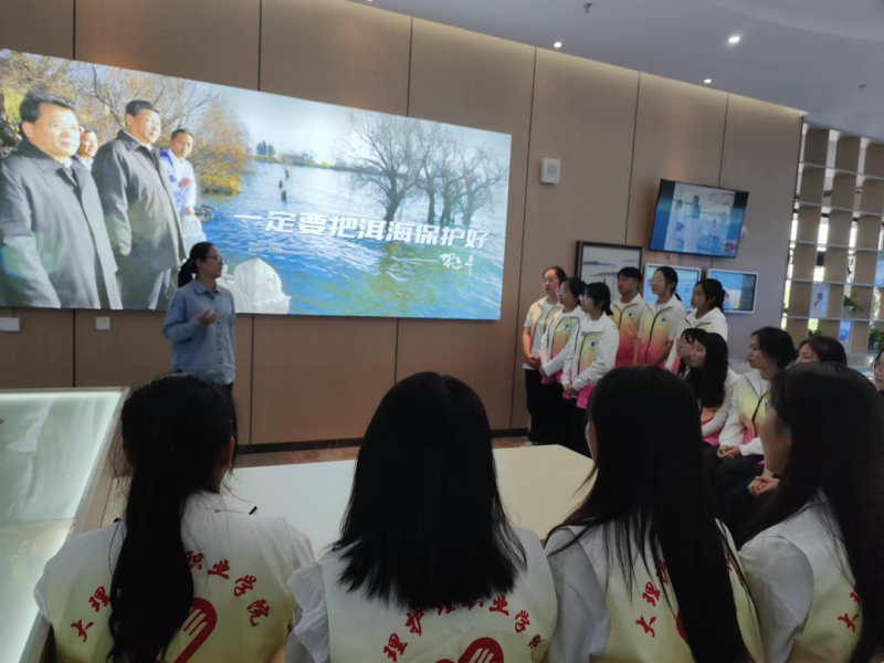 4月14日下午,大理州职业教育思想政治(高职)工作室组织BB贝博艾弗森官方网站青年马克思主义学习社团学生开展“行走的思政课”实践活动,参观上海交通大学云南(大理)研究院洱海科普教育展厅,进一步深入学习贯彻习近平生态文明思想。