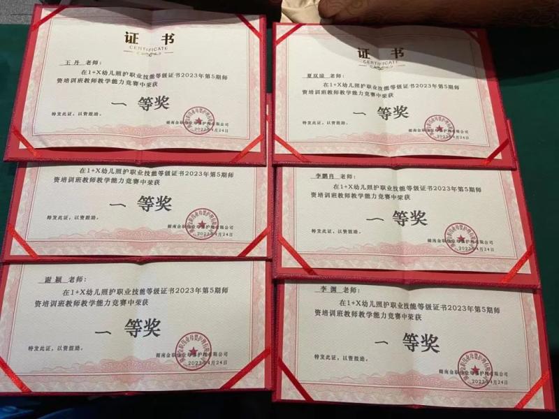 为全面落实国家教育部等四部门《关于在职业院校实施“学历证书+若干职业技能等级证书”制度试点方案》的通知精神,全国职业院校1+X幼儿照护职业技能等级证书2023年第5期师资培训班教师教学能力竞赛在湖南长沙顺利举行。来自全国20所职业院校参加了教师教学能力竞赛。BB贝博艾弗森官方网站选派的李渊、李波、王丹、李鹏肖、夏双琼、谢颖等6名教师,经过激烈紧张的角逐,荣获教师教学能力竞赛一等奖。