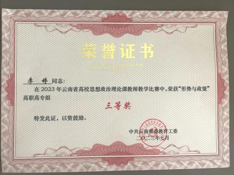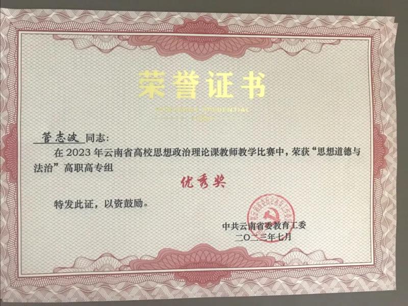 根据《中共云南省委教育工委关于举办2023年云南省高校思想政治理论课教师教学比赛的通知》要求,本着“以赛促教、以赛促学、以赛促改、以赛促建”的原则,马克思主义学院于五月下旬积极组织教师进行预赛,选拔出四名选手代表学校参加比赛。此次比赛由省委教育工委主办,云南农业大学承办,全省各个高校高度重视,积极参加,认真备赛。贝博官网参赛选手按照比赛相关要求精心备赛,在各组的比赛中均取得了良好的成绩,李婷老师在形势与政策高职高专组的比赛中荣获三等奖;张健月老师、管志波老师、杨晶露老师分别在毛泽东思想和中国特色社会主义理论体系概论组、思想道德与法治组、习近平新时代中国特色社会主义思想概论组的比赛中荣获优秀奖。