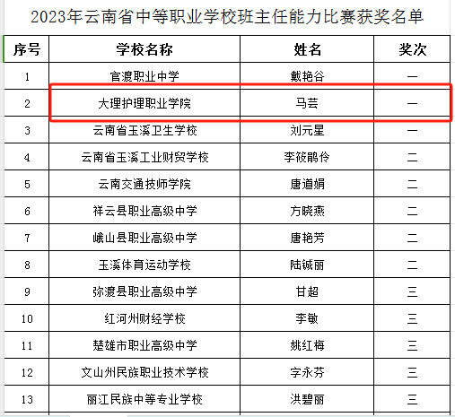 近日,贝博官网教师马芸在2023年云南省中等职业学校班主任能力比赛中喜获一等奖。