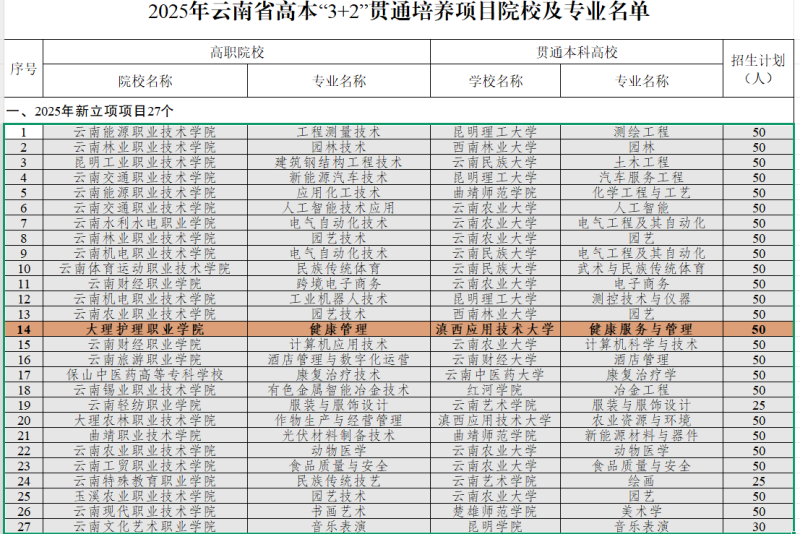 近日,云南省教育厅下发《关于公布2025年职业教育“中高本”贯通培养项目遴选结果》的通知,BB贝博艾弗森官方网站获批2025年高本“3+2”贯通培养项目院校,学校健康管理专业与滇西应用技术大学健康服务与管理专业合作开展一体化高本“3+2”贯通培养,2025年计划招生50人。