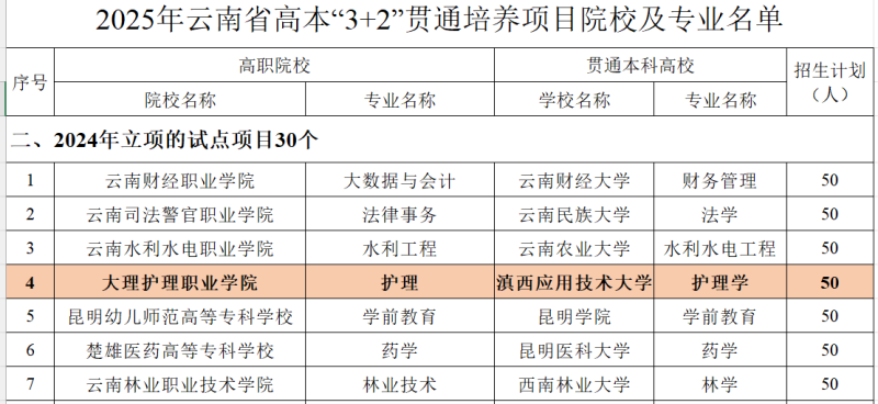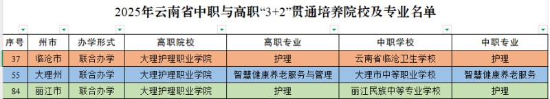 在持续推进一体化高本“3+2”贯通培养中,学校结合区域经济发展及产业发展的需求,积极转型升级,拓展中职与高职“3+2”贯通培养专业,智慧健康养老服务与管理专业首次获批,2025年开始招生。中职与高职“3+2”护理专业贯通培养获批与临沧卫生学校和丽江民族中学专业学校2个学校合作办学,智慧健康养老服务与管理专业贯通培养获批与大理市中等职业学校合作办学,学校将做好指导,一体化制定人才培养方案。在下一步工作中,护理专业将快速转型发展,由规模化发展转向少而精的高质量发展,真正实现高质量护理人才培养。