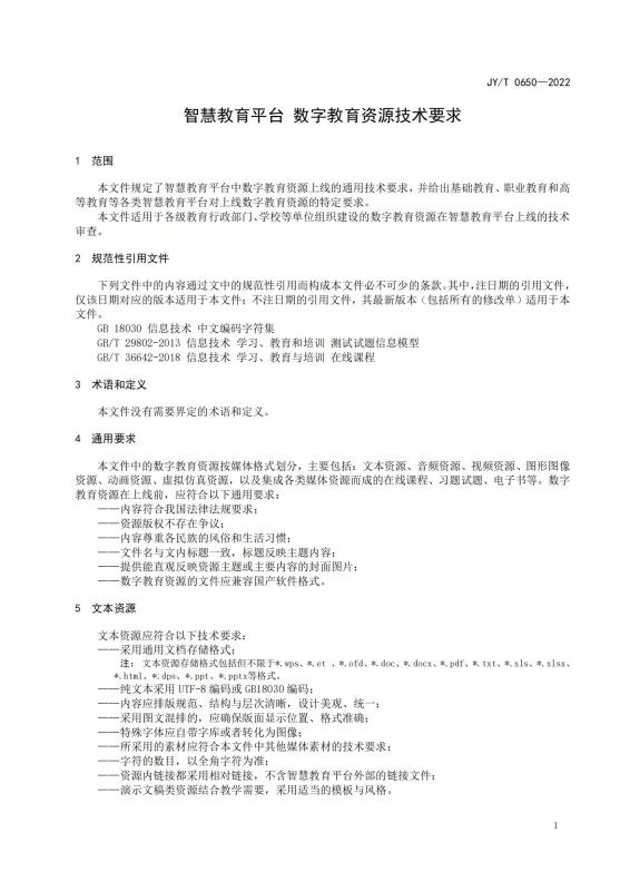 智慧教育平台数字教育资源技术要求